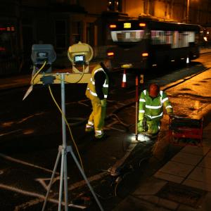 Geobear mobilised four teams to work simultaneously, allowing drilling to be completed and Geobear’s Slab Lifting polymer injection process to be applied in each location over just 8 night time shifts. Geobear undertook a full GPR survey to spot cellars and weak areas beneath the road surface before the works, and completed a post-treatment GPR survey to confirm that the soils treated had been adequately improved.